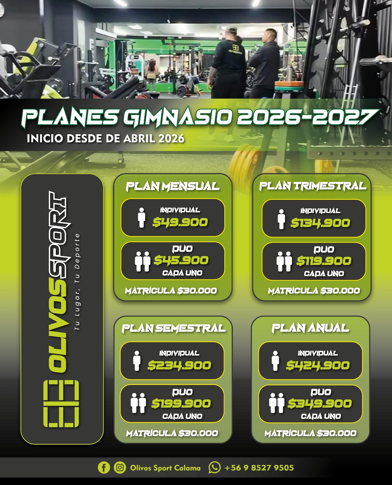 Somos una empresa con más de 18 años de trayectoria en el ámbito de la actividad física, el deporte y la recreación en la ciudad de Calama. Hoy en día, nos consolidamos como el centro deportivo privado más grande del norte de Chile, con una infraestructura de 26.000 m² que nos posiciona como el recinto deportivo más amplio y concurrido de la zona.